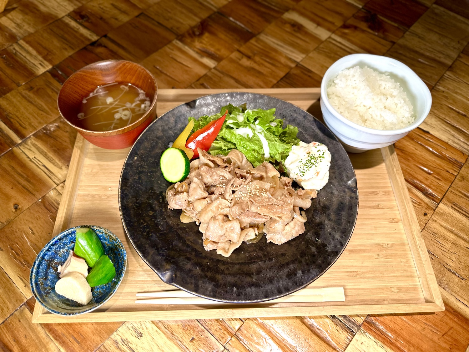 ご飯、汁物、漬物付き